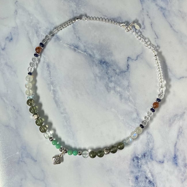 ギベオン、エメラルド、サファイア、ブルートパーズ、グリーンファントムクォーツ、グリーンルチルクォーツ、オレンジルチルクォーツ、ムーンストーン、水晶(パワーストーン)、シルバー925