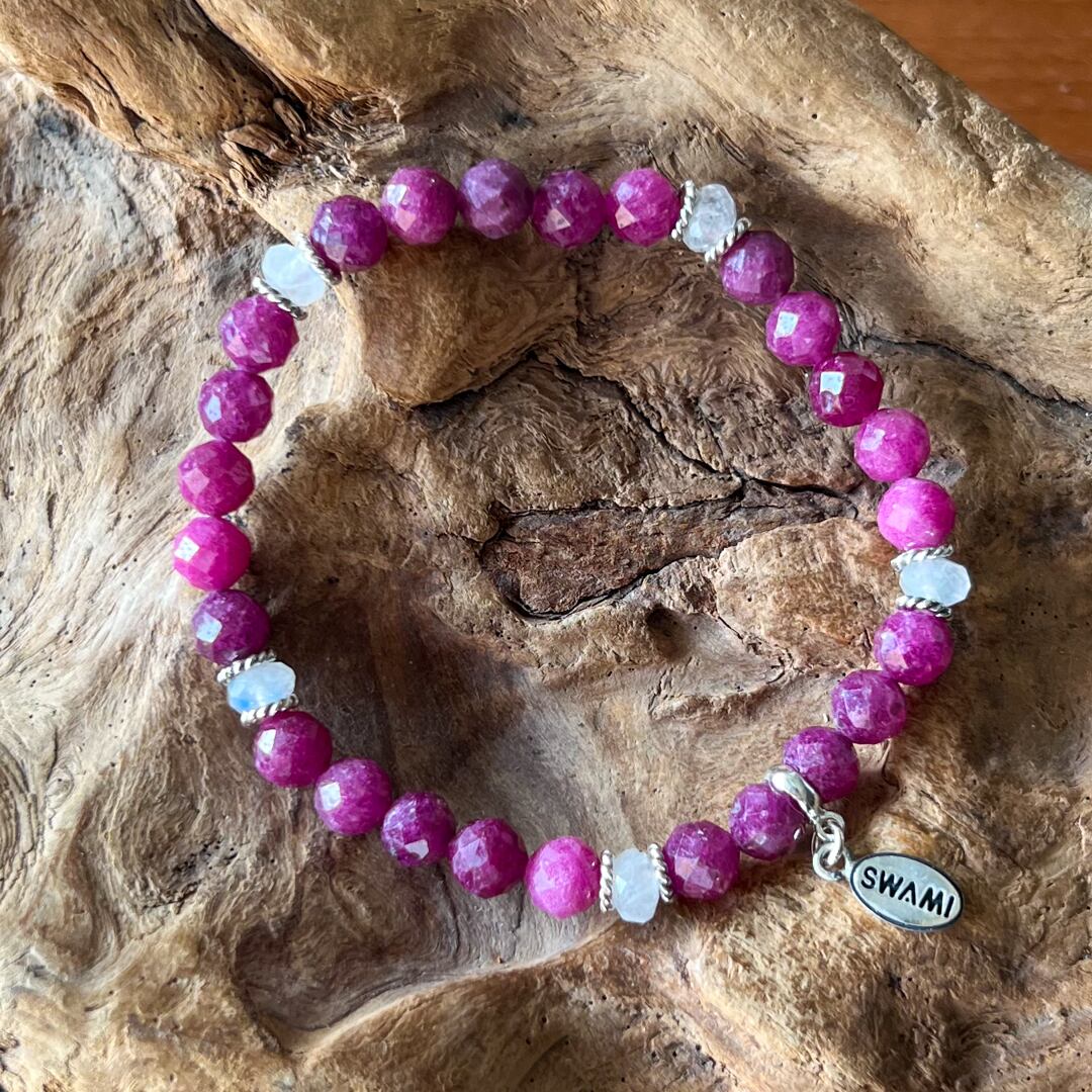 情熱的で行動派、そして気品と優雅さを兼ね備え、愛情豊かなルビー、月の光が宿る石として、神秘の力を持つムーンストーン 愛を伝える石とも言われています。