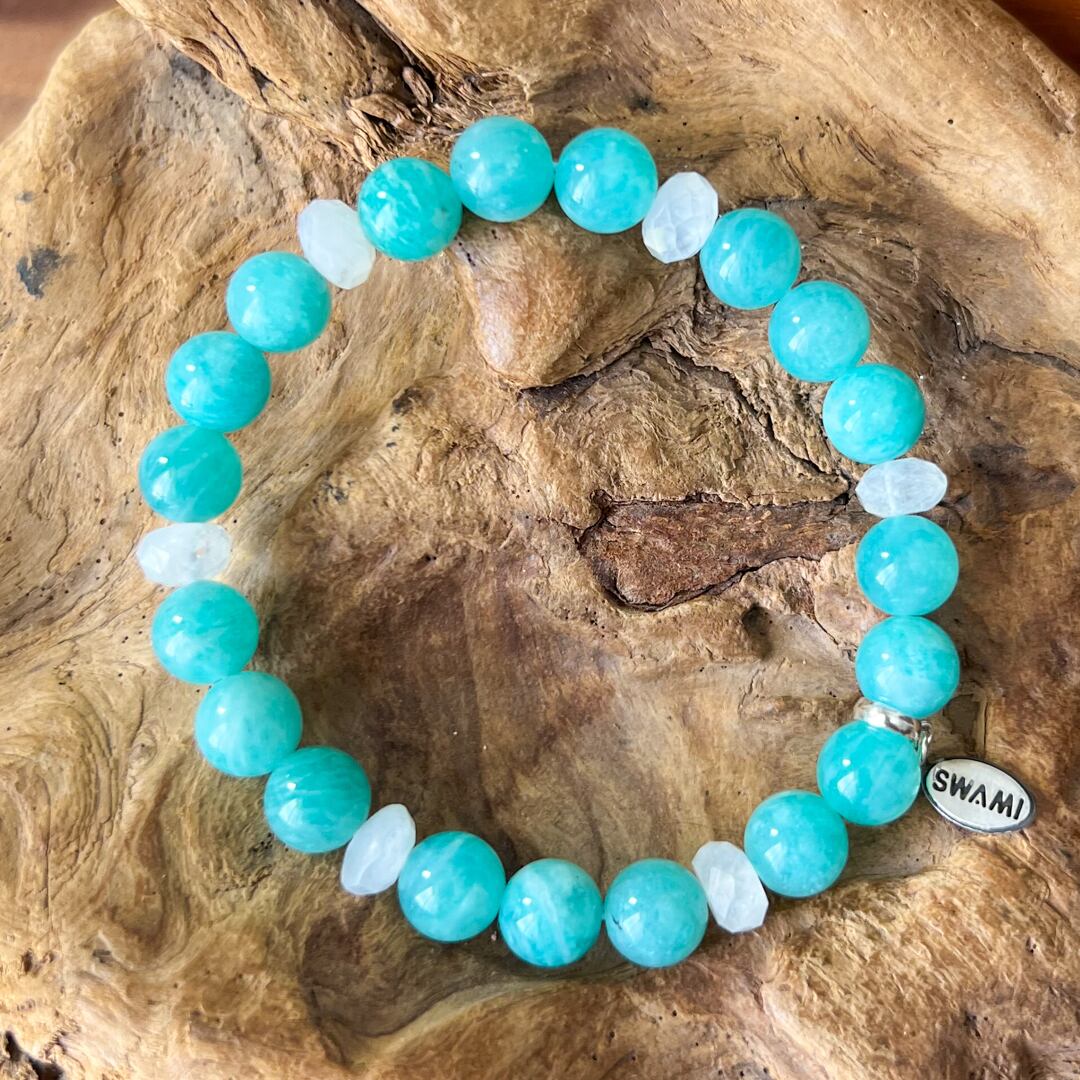 自然の力を感じられるSWAMI スワミ ブレスレット ウィスパーズは、アマゾナイト、ムーンストーン、シルバー925を使用したアクセサリーです。