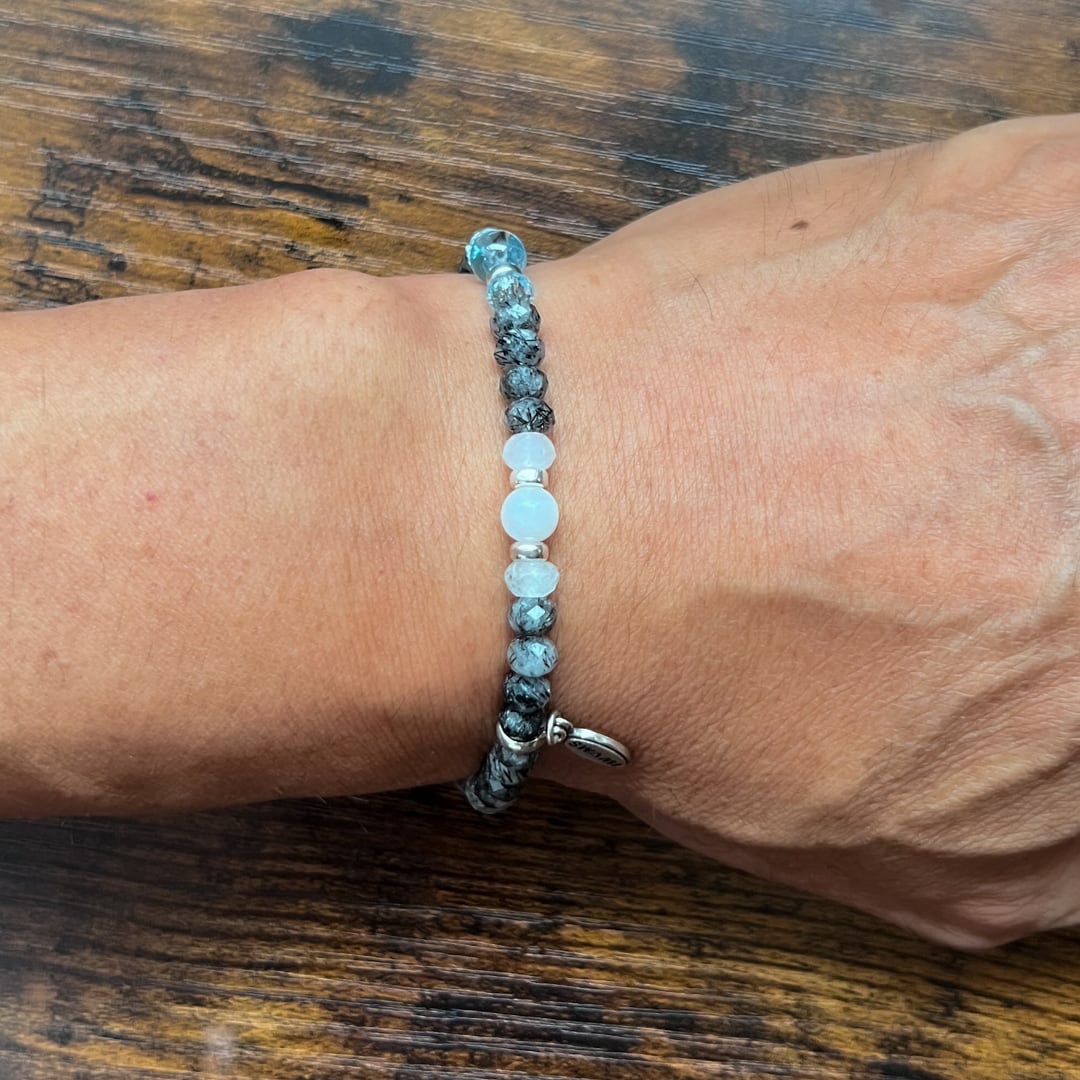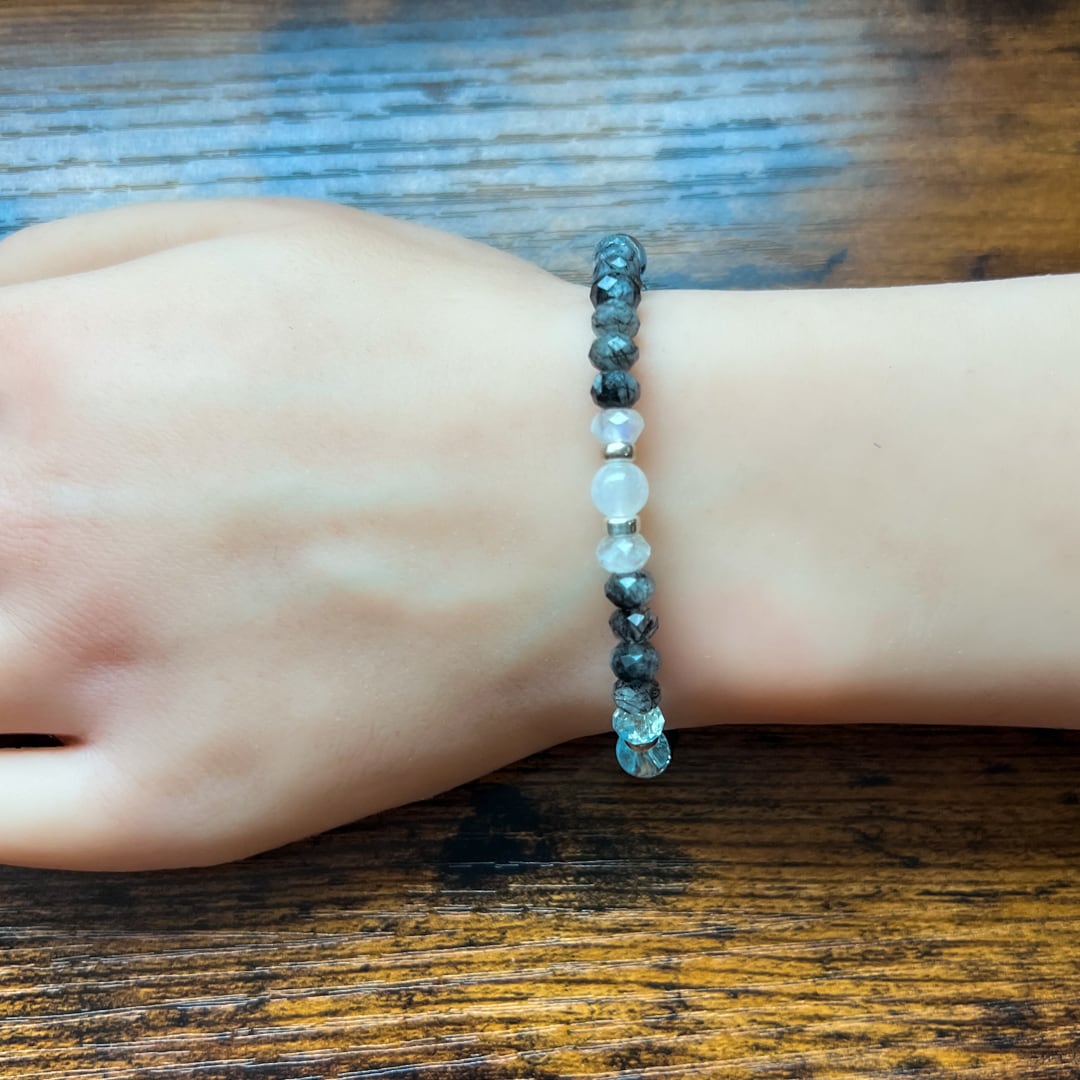 ブルートパーズ、ブルームーンストーン、ブラックトルマリンインクォーツ、シルバービーズ、シルバー925