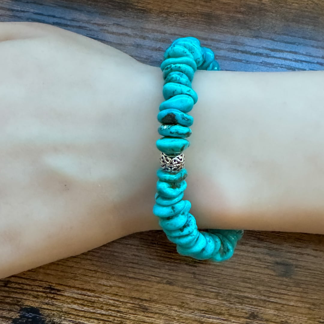 このブレスレットは、高品質なシルバービーズ925とターコイズを使用しており、その美しい輝きと鮮やかなブルーカラーが一層引き立ちます。