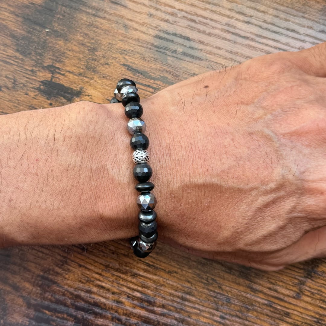 このSWAMIブレスレットは、シュンガイト、テラヘルツ、シルバー925の組み合わせで、パワフルなエネルギーを身にまとうことができるアイテムです。