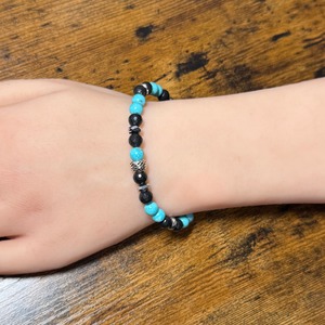 天然ターコイズは、心の平和をもたらし、コミュニケーション能力を高めるとされる石です。爽やかなブルーの色合いは、持ち主にリフレッシュ感をもたらし、ポジティブなエネルギーを引き寄せる力があると人気です。ヘマタイトは、グラウンディング効果を持ち、持ち主を精神的に安定させるサポートをします。さらに、シュンガイトはエネルギーの浄化や保護の象徴とされ、持ち主に安らぎを与える存在と考えられています。シルバー925ビーズは高品質で、全体の優雅さを引き立てながら、持ち主のエネルギーをクリアに保つ役割を果たします。
